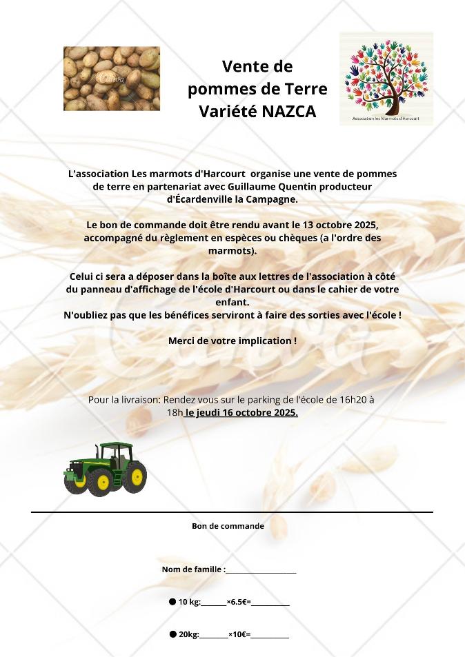 ASSOCIATION LES MARMOTS D’HARCOURT ET CIE – VENTE DE POMMES DE TERRE