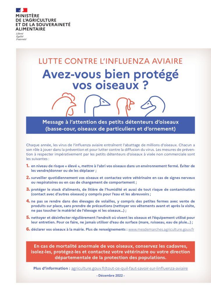 » GRIPPE AVIAIRE : VOS OISEAUX SONT-ILS BIEN PROTÉGÉS ?