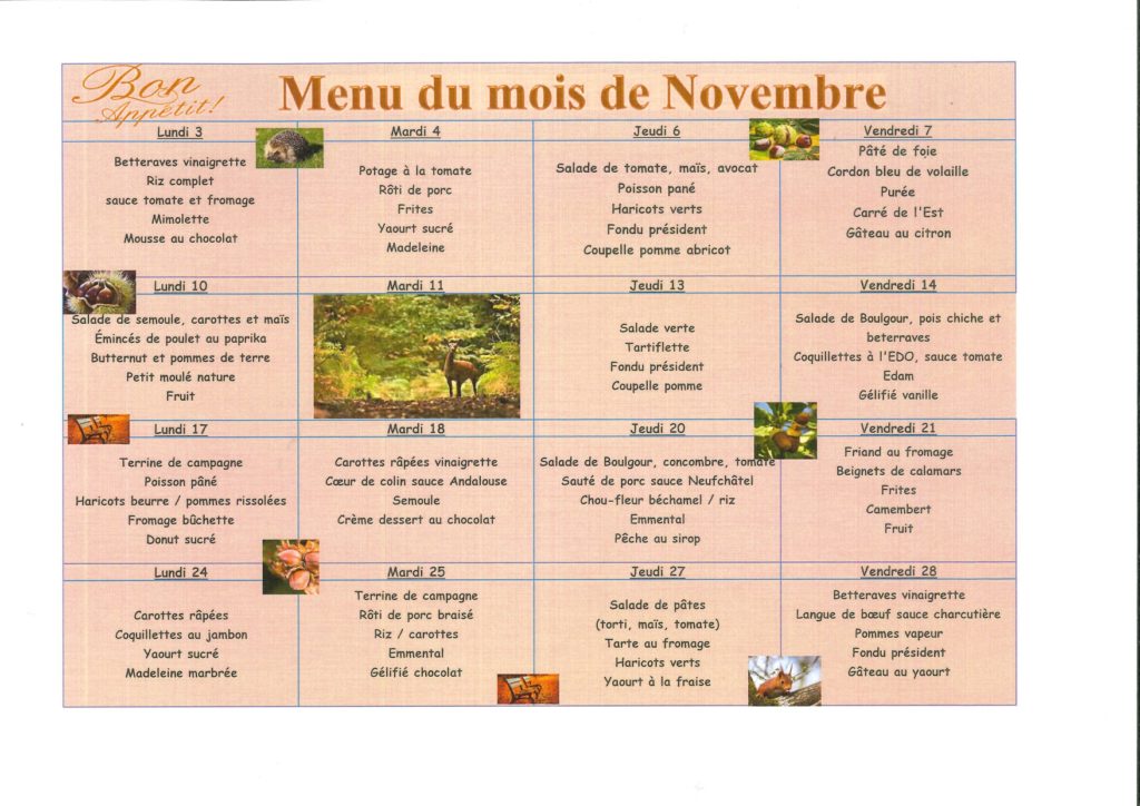 MENUS DE LA CANTINE D’HARCOURT – NOVEMBRE ET DÉCEMBRE 2025