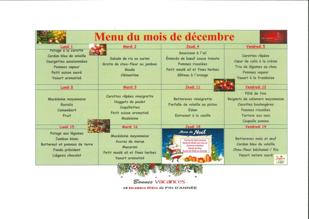 » MENUS DE LA CANTINE D’HARCOURT – NOVEMBRE ET DÉCEMBRE 2025